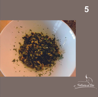 Unire tutte le erbette, l'aglio, lo scalogno, le noci rotte grossolanamente e l'erba carè in una ciotola e irrorare con abbondante olio Evo. Coprire con la pellicola e lasciare riposare a temperatura ambiente.