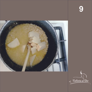 Facendo attenzione sempre alla quantità di brodo anche quando c'è il formaggio, verso fine cottura mettere un coperchio sopra la pentola e abbassare il fuoco al minimo per un paio di minuti. Verificare la sapidità e aggiustare eventualmente di sale.